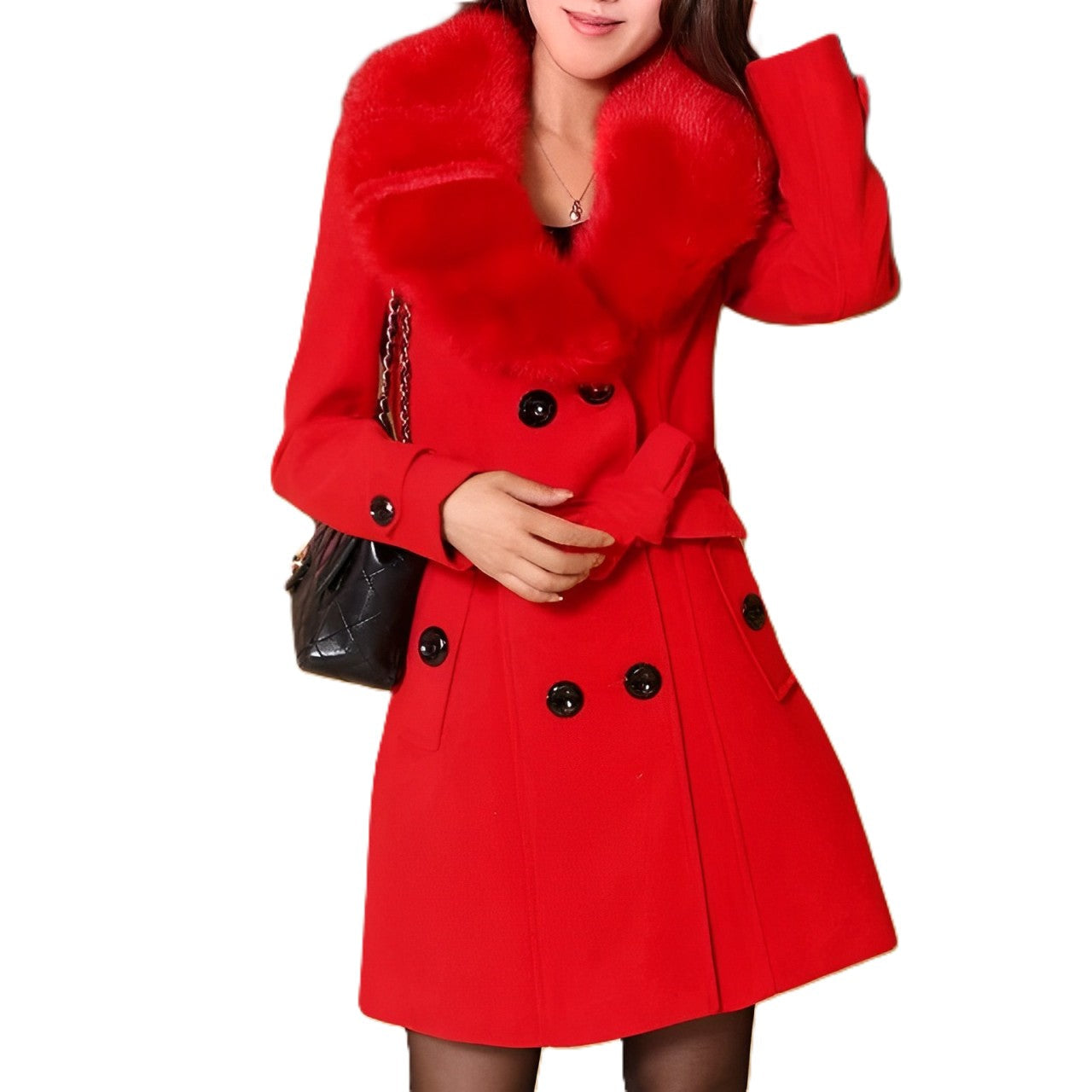 Damen Woll Kurzmantel mit Kunstfellkragen Winter
