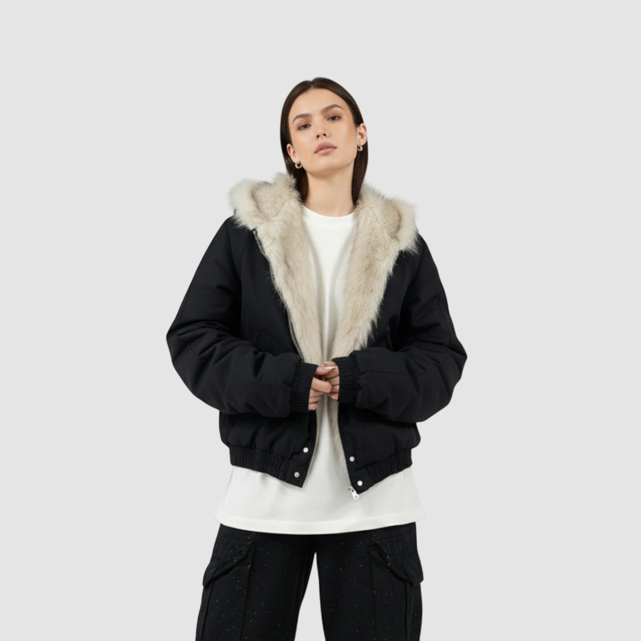 Damen Winterjacke aus Kunstpelz mit elegantem Schnitt