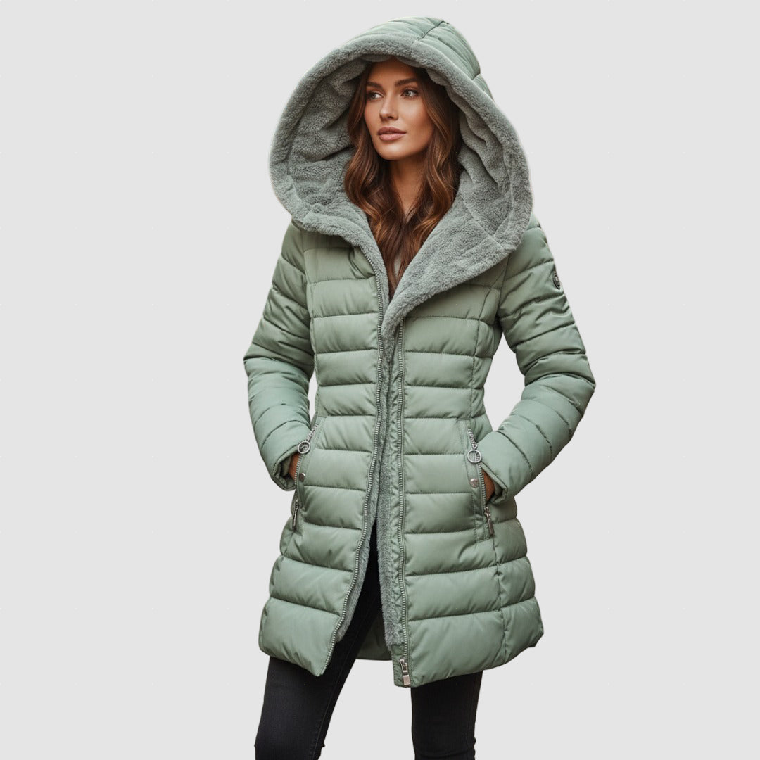 Damen Winter Daunenmantel | Lange Gefütterte Steppjacke