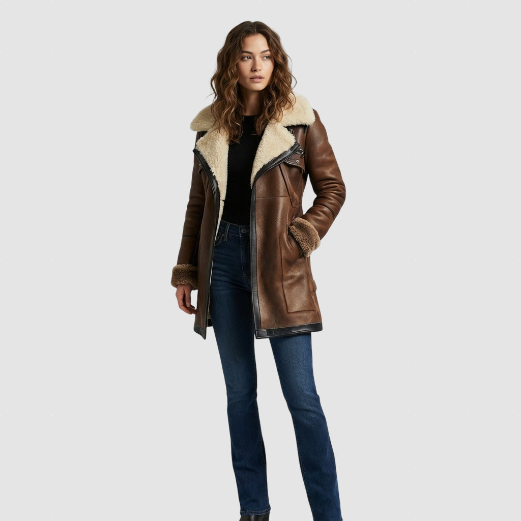 Damen Lammfellmantel aus Leder mit Warmfutter Winter