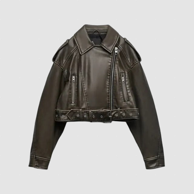 Damen Kurz Lederjacke aus Kunstleder für Winter