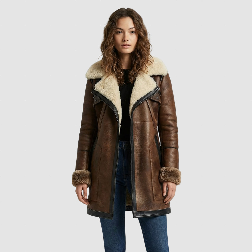 Damen Lammfellmantel aus Leder mit Warmfutter Winter