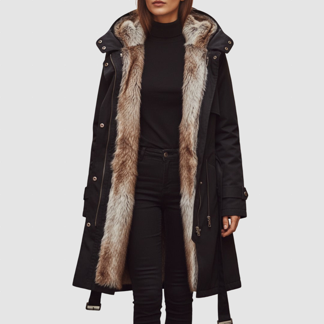 Warme Damen-Winterparka mit Fellimitat für die kalte Jahreszeit
