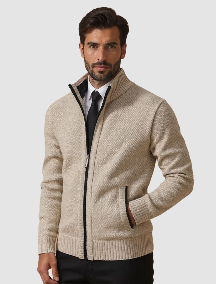 Herren Strickjacke mit Stehkragen aus Wolle für Winter