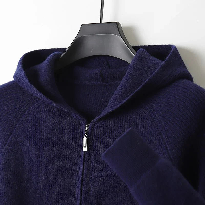 Herren Strickjacke mit Kapuze und Reißverschluss aus Wollmix für Winter