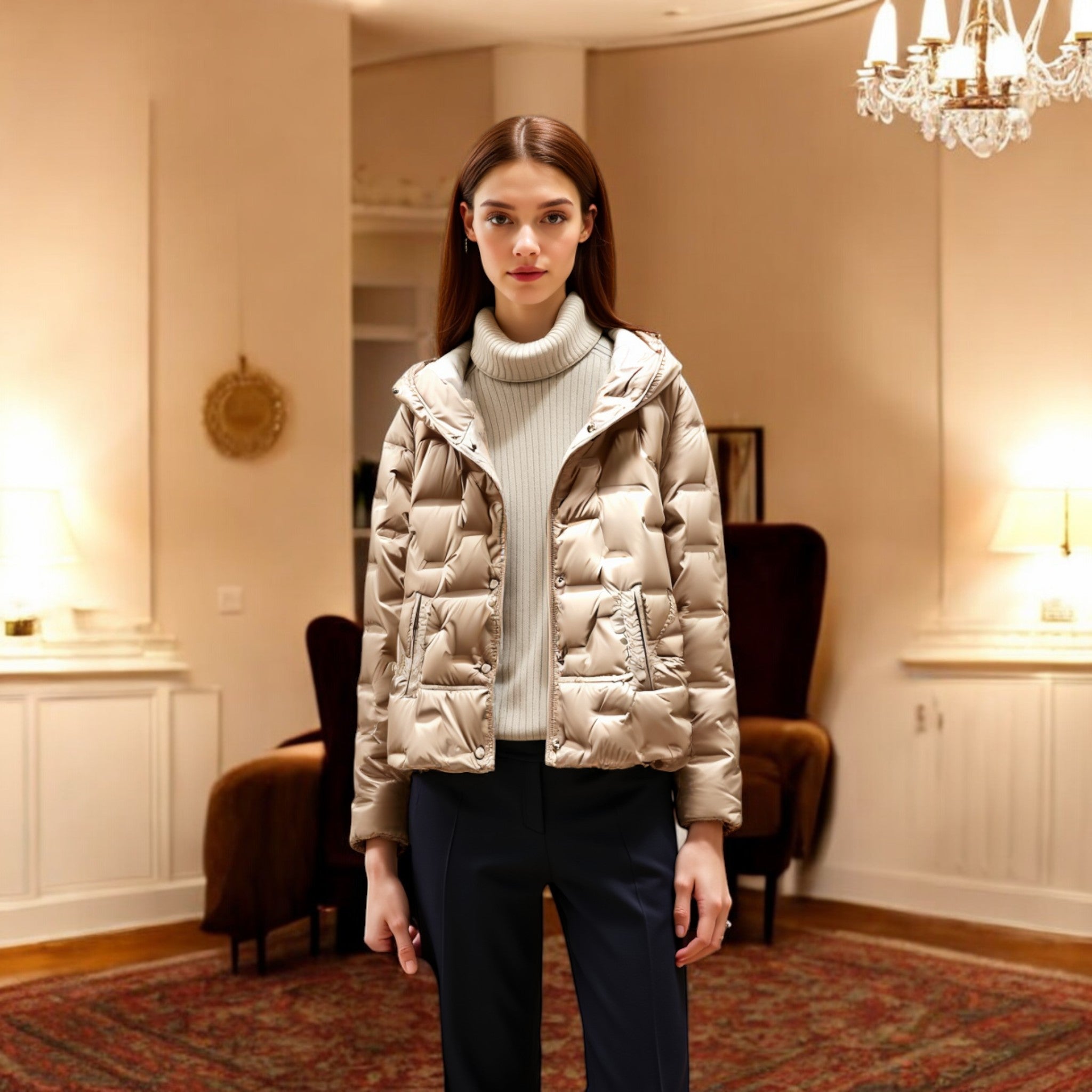 Diese leichte Steppjacke ist ideal für die Übergangszeit, wenn die Temperaturen milder werden. Die wattierte Struktur sorgt für angenehme Wärme, ohne zu beschweren, während das glatte Innenfutter ein komfortables Tragegefühl bietet. Die Kapuze schützt vor kühler Luft, und der lockere Schnitt macht die Jacke vielseitig einsetzbar – perfekt für Alltag, Stadtbummel oder den Weg zur Arbeit im frühen Frühling.