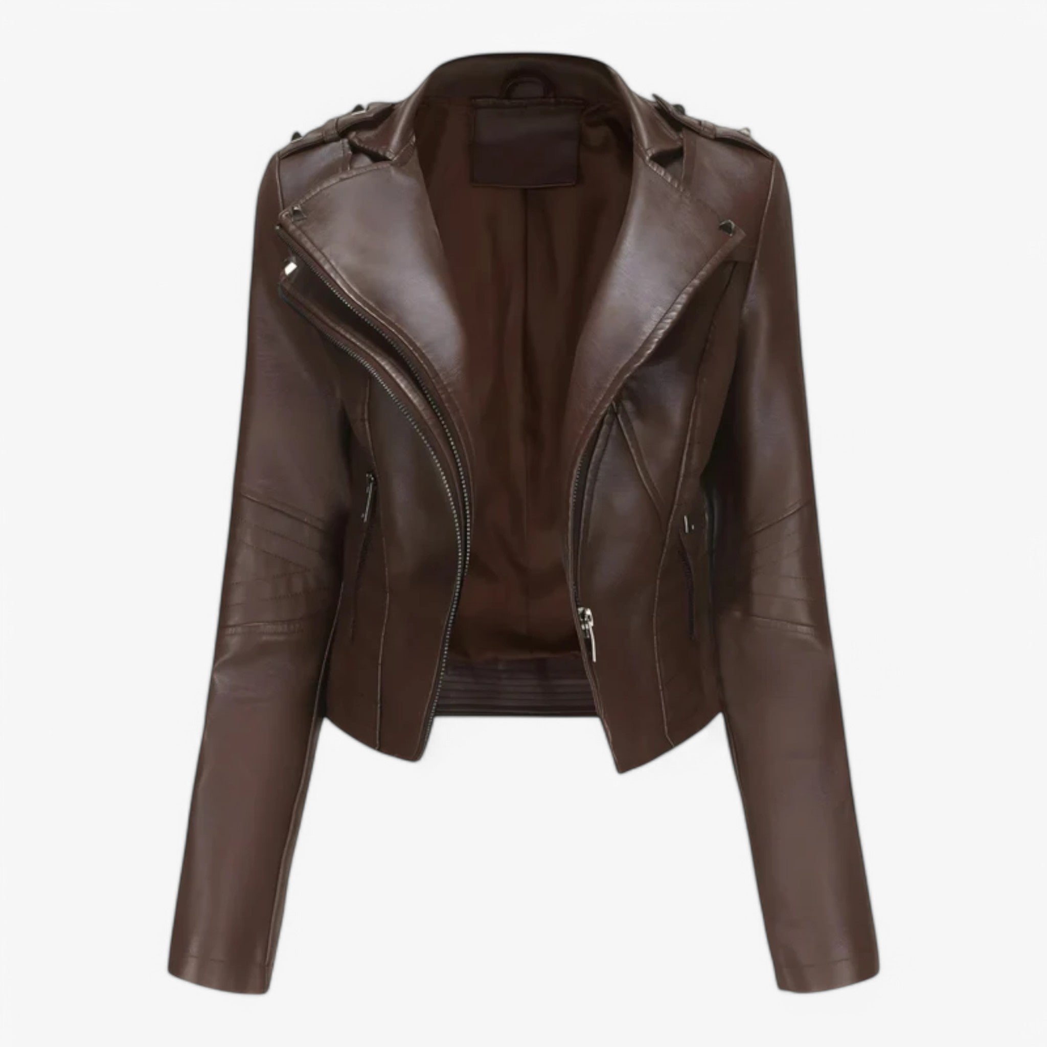 Diese Damen-Lederjacke überzeugt mit einem modernen, körpernahen Schnitt und ist ideal für die kommende Übergangssaison. Das glatte Leder- oder Lederimitat-Material sorgt für ein angenehmes Tragegefühl und bietet leichten Schutz an kühleren Tagen. Der asymmetrische Reißverschluss und die klaren Linien verleihen der Jacke einen zeitlosen, urbanen Look, der sich vielseitig kombinieren lässt – perfekt für Alltag, Freizeit und City-Outfits.